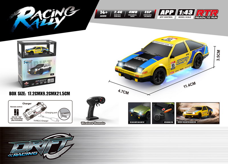 2.4G 1:43 4WD R/C DRIFT CAR W/LIGHT W/US... |