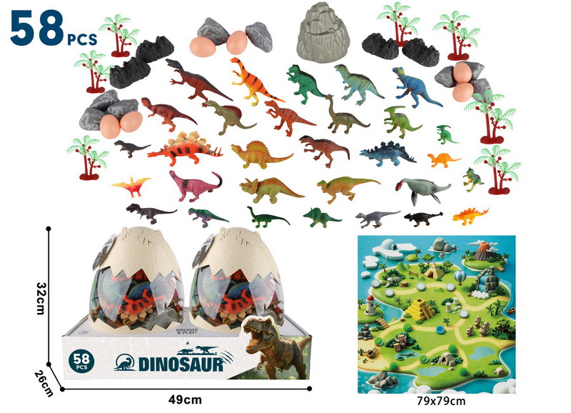 | DINOSAUR PLAY SET 58PCS,2 BOTTLE |